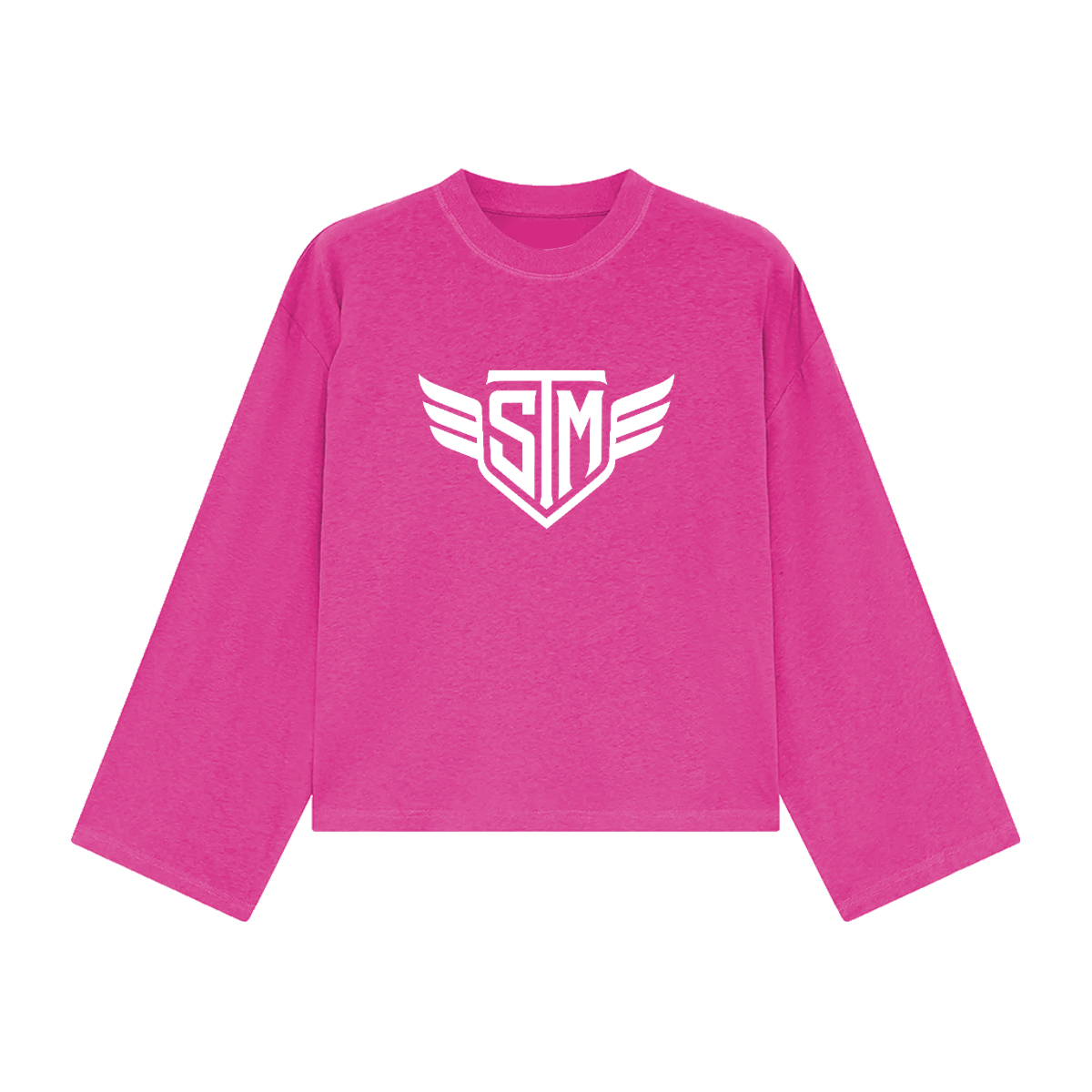 This is a stylish, long-sleeved, cropped T-shirt made from 100% combed cotton,